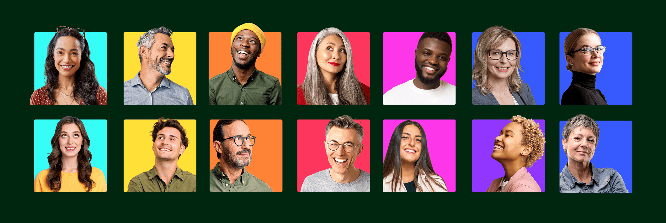Our expressive colour palette can be used behind portraits, adding a sense of vibrancy to the compositions, and occasionally overlapping the boundary makes the portraits less feel restricted.